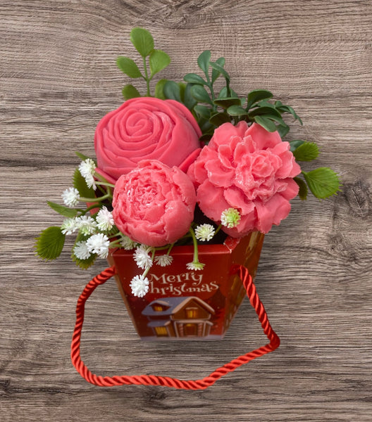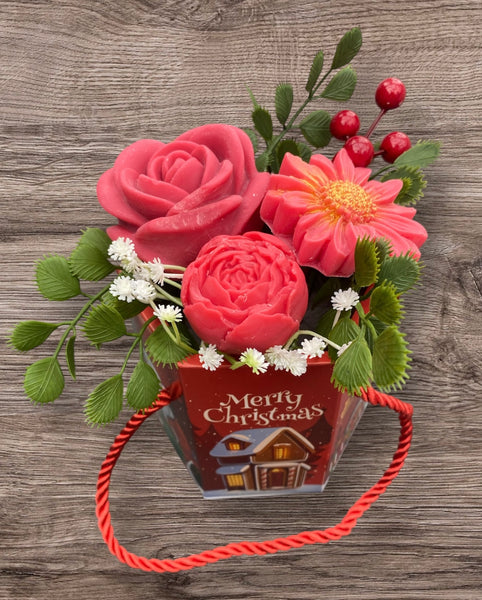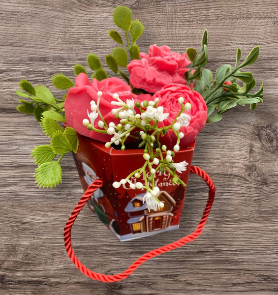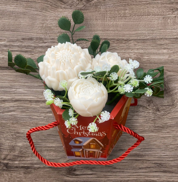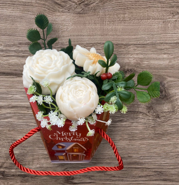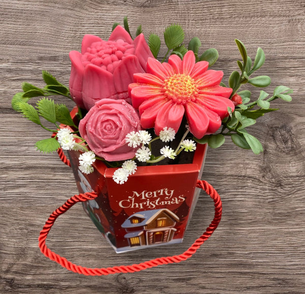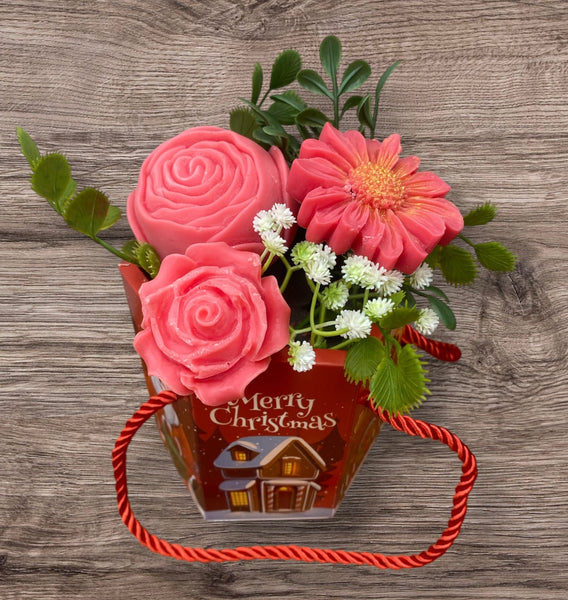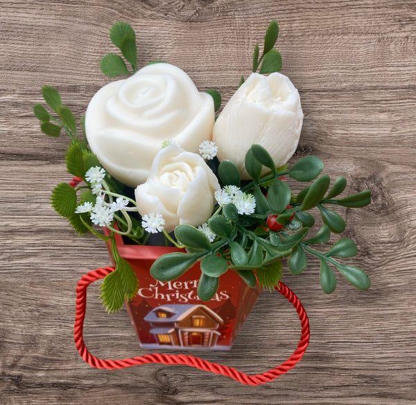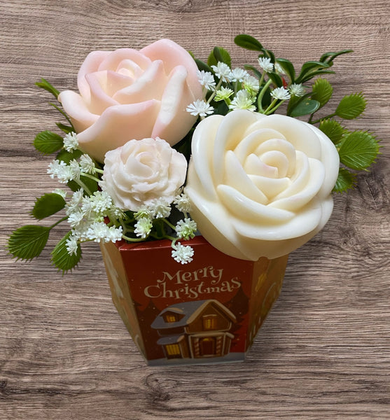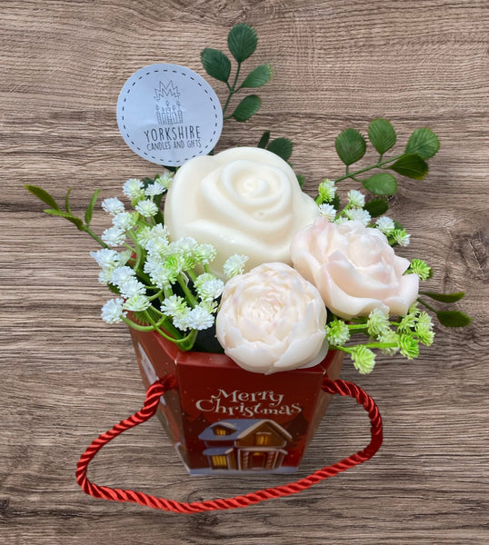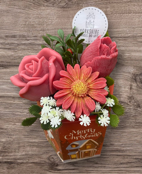 An absolute beautiful wax flower display presented in a Christmas themed box. Ideal as a small gift, teacher gift or secret Santa.